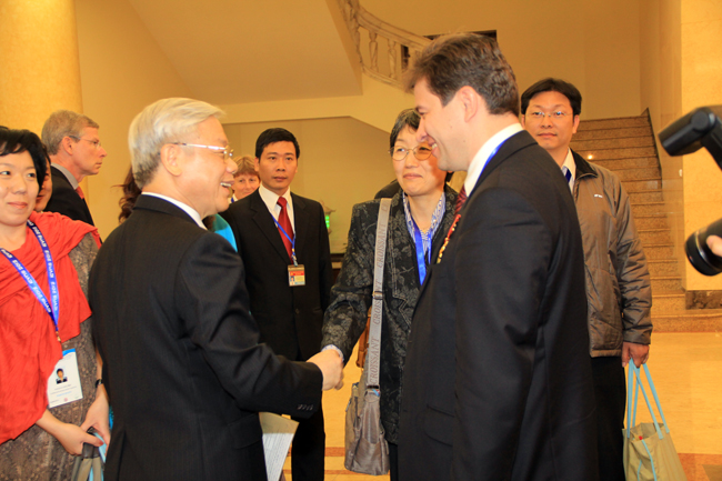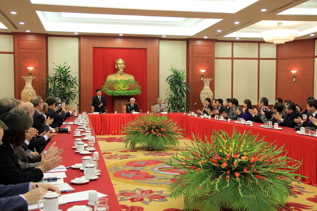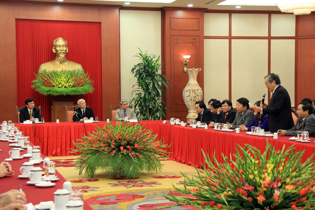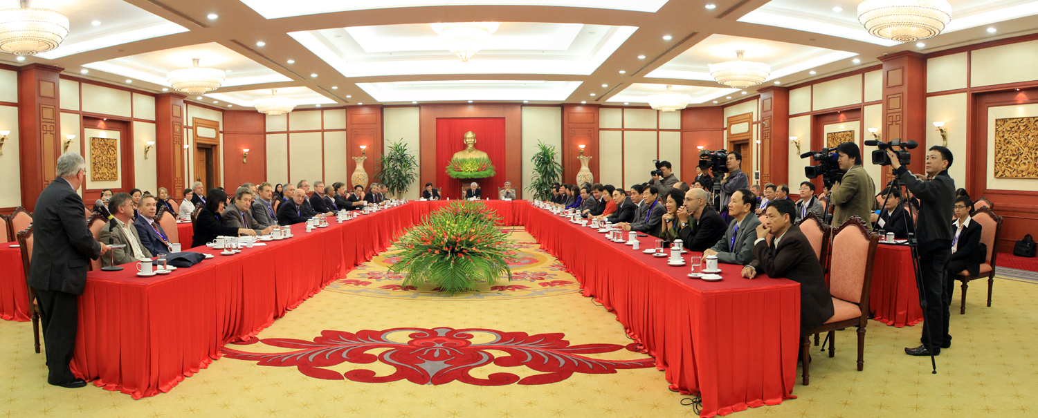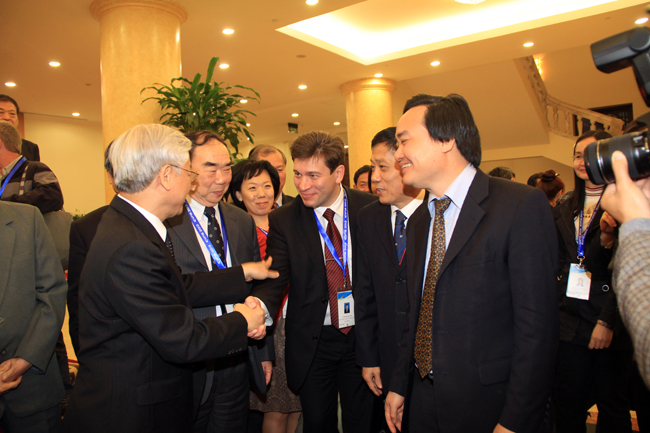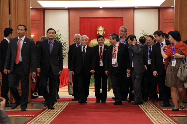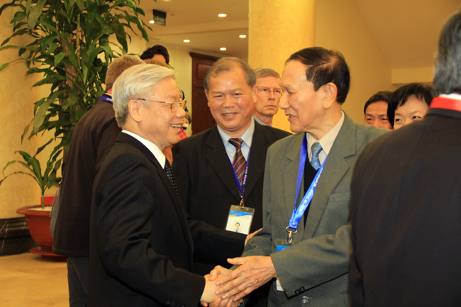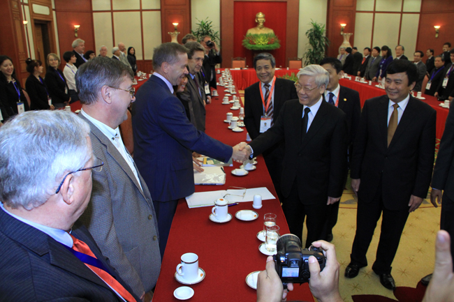 Tổng Bí thư Nguyễn Phú Trọng bày tỏ mong muốn các nhà nghiên cứu, các học giả tiếp tục đi sâu nghiên cứu về Việt Nam nhằm giúp chia sẻ với Việt Nam những kinh nghiệm bổ ích trên các lĩnh vực, nhất là kinh nghiệm về lãnh đạo, quản lý, điều hành đất nước; hoan nghênh việc mở rộng hơn nữa mối quan hệ hợp tác thiết thực giữa các nhà khoa học Việt Nam và quốc tế.