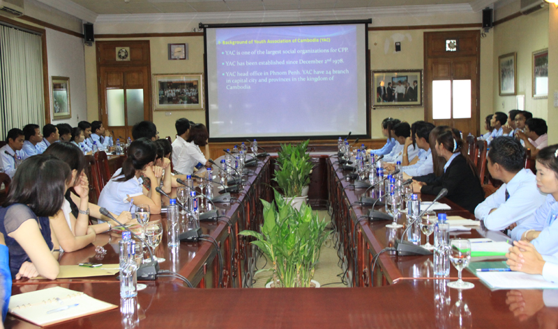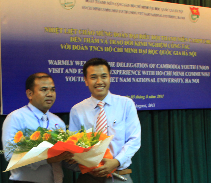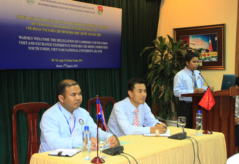 Đoàn gồm gần 30 người là lãnh đạo các Hội địa phương thuộc Hội Thanh niên Campuchia do ông Pro Nak – Trưởng đoàn học viên Hội Thanh niên Campuchia dẫn đầu. Tiếp và làm việc với Đoàn có đồng chí Nguyễn Hải Minh – Phó Bí thư thường trực Đoàn Thanh niên CS Hồ Chí Minh, Chủ tịch Hội Sinh viên ĐHQGHN cùng đại diện lãnh đạo một số tổ chức cơ sở Đoàn thuộc Đoàn ĐHQGHN.
