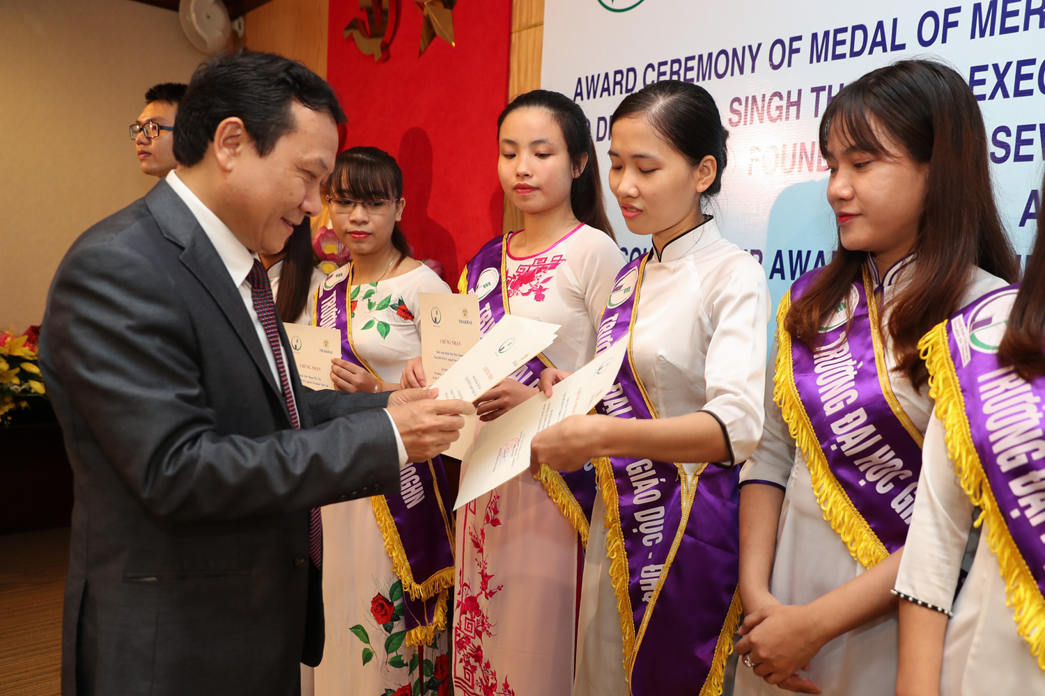 Phó Giám đốc ĐHQGHN Nguyễn Hồng Sơn trao học bổng Thakral - In Sewa cho sinh viên