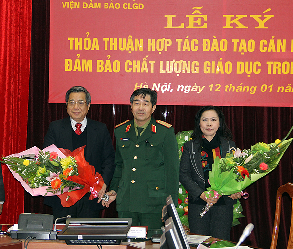 Đại diện lãnh đạo Viện ĐBCLGD, PGS.TS Nguyễn Phương Nga giới thiệu đôi nét về các hoạt động của Viện, qua đó khẳng định: Viện là đơn vị đặt nền móng cho công tác KĐCLGD ở Việt Nam; là đơn vị đầu tiên đào tạo nhân lực chất lượng cao về ĐBCLGD của Việt Nam; tiên phong trong hoạt động tư vấn, hỗ trợ kỹ thuật về KĐCLGD các trường đại học và cao đẳng trong cả nước và tiên phong hội nhập quốc tế về lĩnh vực này. Với sự kiện ký kết hợp tác này, triển vọng phát triển mới sẽ mở ra cho cả hai bên trong việc đào tạo, nghiên cứu khoa học phục vụ sự phồn vinh của đất nước, đồng thời là minh chứng cho sự gắn kết chặt chẽ giữa quân và dân trên mặt trận giáo dục, đặc biệt trong lĩnh vực ĐBCLGD.