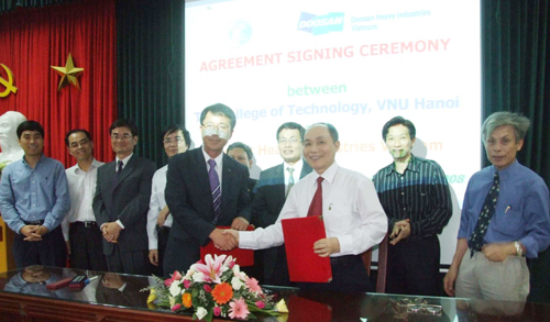 Đến dự và chứng kiến lễ ký về phía Doosan Vina có ông Chu Sung Son - Giám đốc và ông Kim Hoon - Giám đốc nhân sự; về phía Trường ĐHCN có GS.TS Nguyễn Hữu Đức - Hiệu trưởng cùng lãnh đạo một số phòng chức năng, đại diện sinh viên các năm thứ 3 và năm thứ 4.