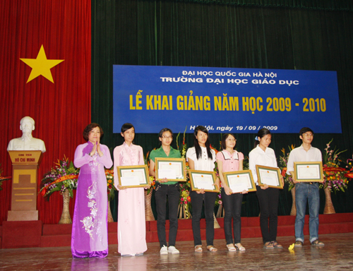 Hiệu trưởng Trường ĐH Giáo dục trao phần thưởng và giấy khen cho những sinh viên xuất sắc và giỏi |