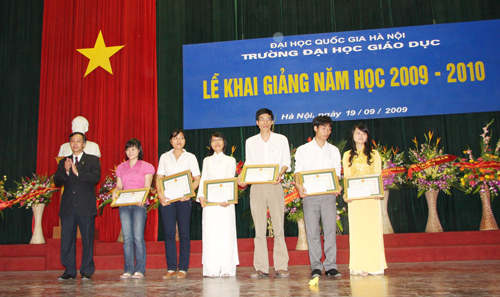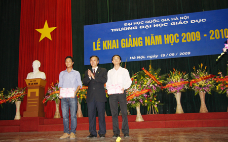 Tại buổi lễ, GS.TS Nguyễn Hữu Đức - Phó giám đốc ĐHQGHN đã phát biểu chúc mừng những thành tích Trường ĐH Giáo dục đạt được trong năm học 2008 - 2009 đồng thời bày tỏ niềm tin rằng với những thế mạnh và truyền thống sẵn có, trong năm học 2009 - 2010, Nhà trường sẽ có nhiều chuyển biến tích cực hơn nữa trong việc chủ động tìm các giải pháp đổi mới phương pháp giảng dạy và học tập, triển khai việc áp dụng các yếu tố tích cực của đào tạo theo tín chỉ, nâng cao chất lượng đào tạo các hệ, tích cực liên kết, đề xuất các ngành đào tạo mới nhằm khai thác, phát huy sức mạnh đặc thù của Trường ĐH Giáo dục với sức mạnh tổng hợp đa ngành, đa lĩnh vực của ĐHQGHN.