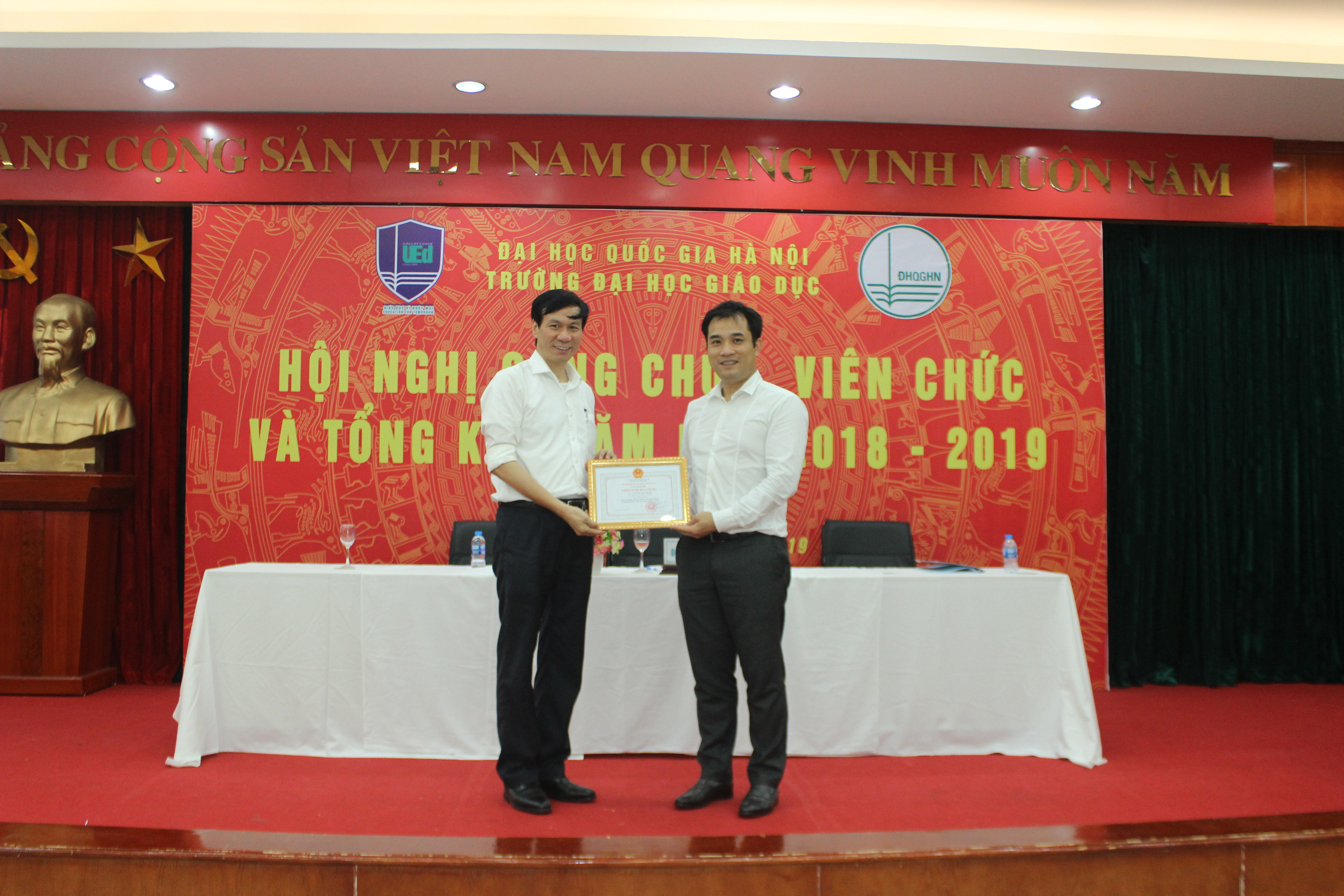 Các cán bộ nhà trường nhận bằng khen từ Bộ Giáo dục và Đào tạo, ĐHQGHN và nhà trường
