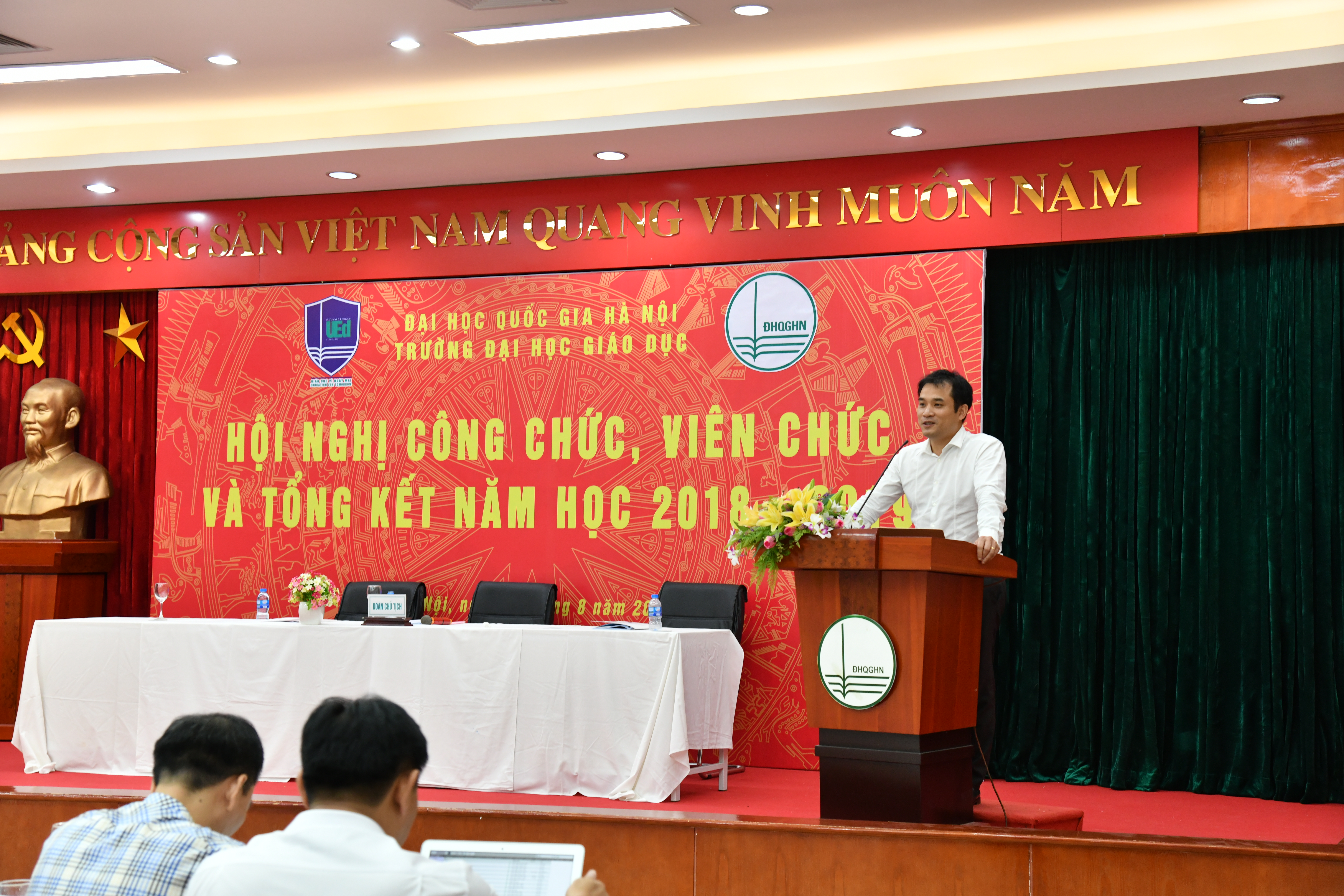 Phát biểu chỉ đạo tại hội nghị, Phó Giám đốc ĐHQGHN Phạm Bảo Sơn biểu dương và ghi nhận những kết quả mà nhà trường đạt được trong năm học vừa qua, nhất là thành tích trong nghiên cứu khoa học, gia tăng đáng kể các bài báo đăng trên các tạp chí khoa học quốc tế. Ông lưu ý, trong quá trình xây dựng các chương trình đào tạo mới, nhà trường cần lựa chọn chương trình có tính liên ngành cao và phải đáp ứng nhu cầu xã hội.
