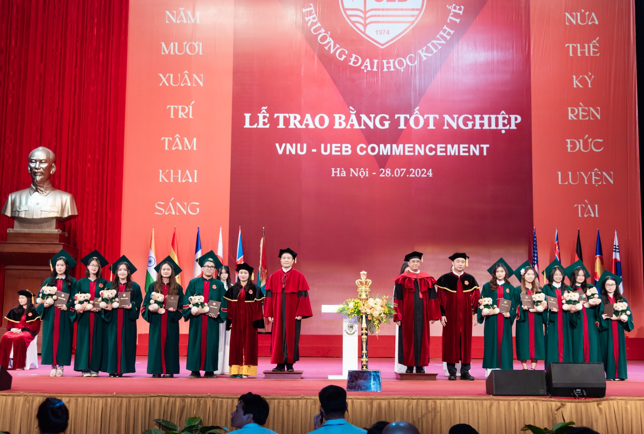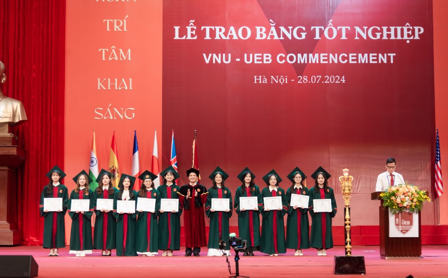Trao bằng đợt 1/2024 có 15 tiến sĩ, 85 thạc sĩ và 937 cử nhân tốt nghiệp các ngành như: Quản trị Kinh doanh, Tài chính ngân hàng, Kế toán, Kinh tế Phát triển, Kinh tế Quốc tế và Kinh tế.