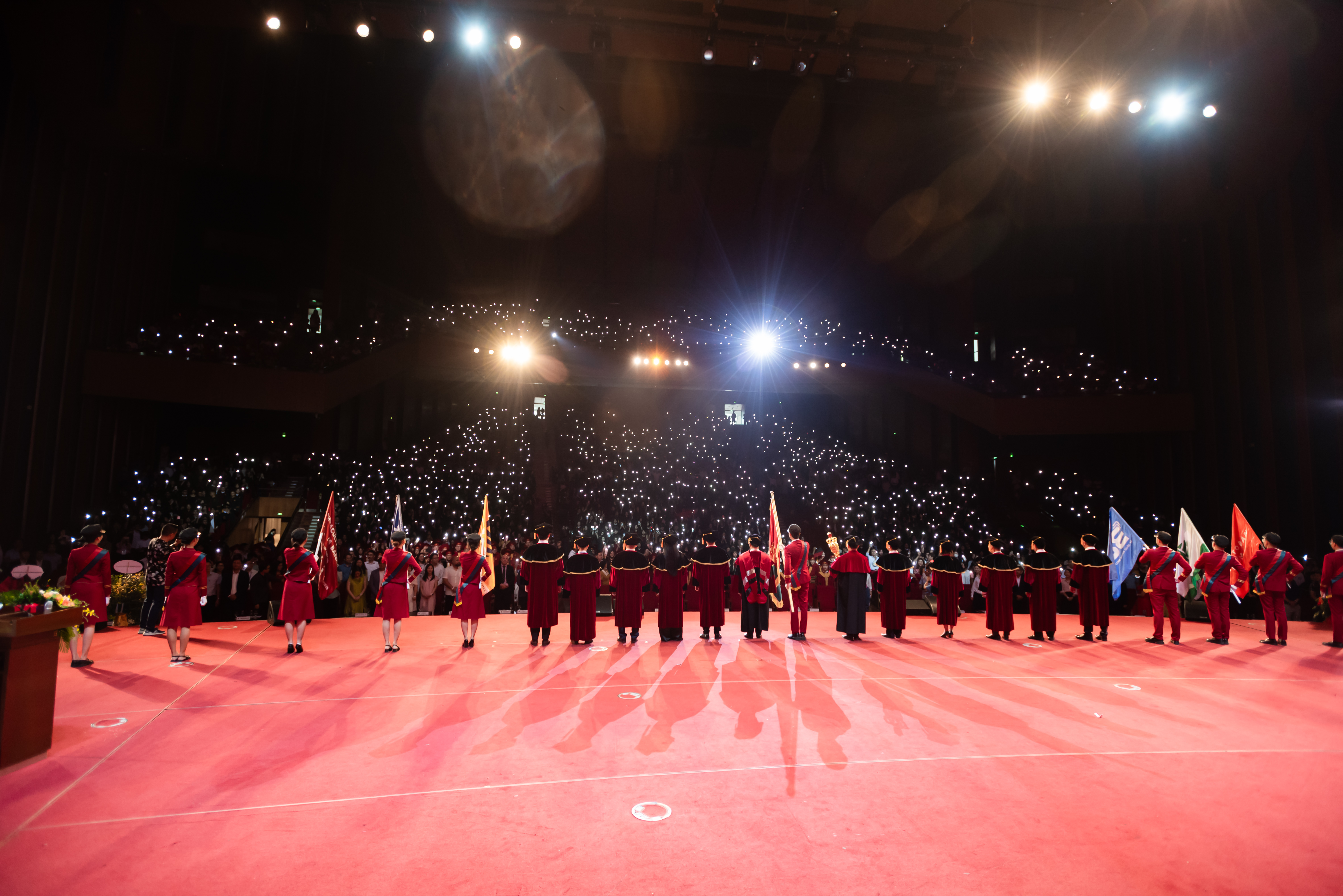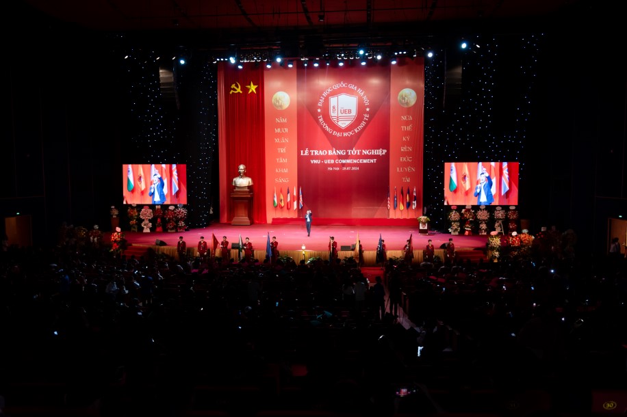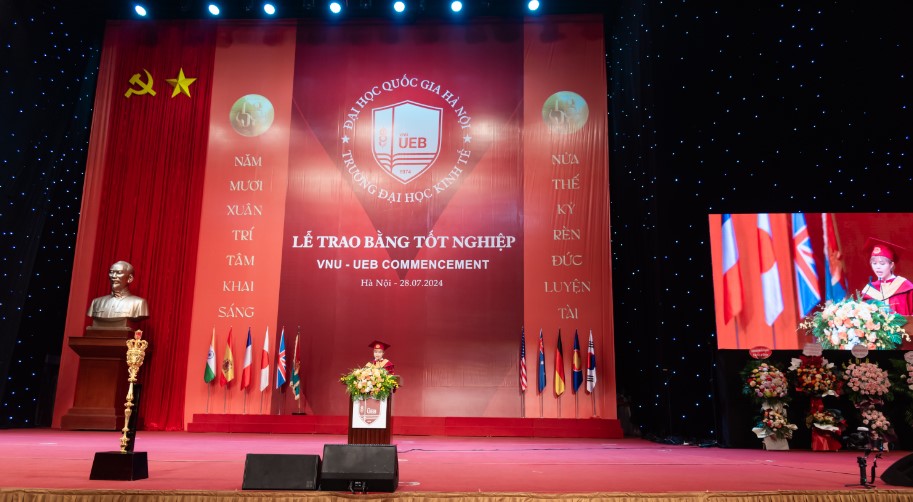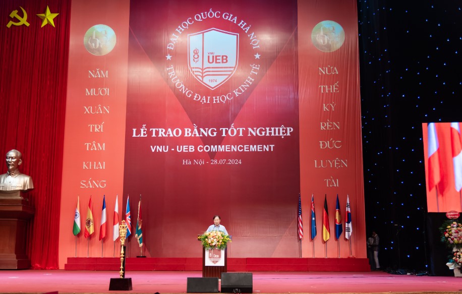 Trong bài phát biểu khai mạc buổi lễ, Hiệu trường Trường ĐH Kinh tế Lê Trung Thành xúc động chia sẻ: Khởi nguồn từ Khoa Kinh tế Chính trị, Trường Đại học Tổng hợp Hà Nội và nay là Trường Đại học Kinh tế - ĐHQGHN. Trải qua nửa thế kỷ dựng xây tâm huyết, những người lái đò đã đưa biết bao thế hệ sinh viên, học viên cập bến bờ thành công. Năm mươi năm trưởng thành, cống hiến, hội nhập với khu vực và quốc tế, đạt được nhiều thành tựu và đã được định vị trên nhiều bảng xếp hạng uy tín thế giới. Và hôm nay, hơn 1 ngàn gương mặt tân tiến sĩ, tân thạc sỹ, tân cử nhân có mặt tại đây là một trong những minh chứng sống động, đầy giá trị cho quá trình dạy và học với nhiều thế hệ thầy trò đã cùng nhau tích lũy Tâm – Đức – Trí – Tài.