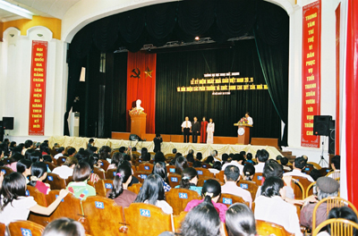 Sau diễn văn chào mừng của Bí thư Đảng uỷ, Hiệu Trưởng Nguyễn Văn Lợi là lễ trao tặng các phần thưởng, danh hiệu thi đua cho các cá nhân và đơn vị có thành tích xuất sắc trong công tác trong năm học 2005 – 2006, bao gồm: 1 Huân chương Lao động Hạng Nhì, 3 Huân chương Lao động Hạng 3, 1 Bằng khen của Thủ tướng Chính phủ, 1 Huy chương Bảo vệ an ninh Tổ quốc, 122 kỷ niệm chương Vì sự nghiệp Giáo dục. Cũng trong dịp này, 4 giảng viên được công nhận chức danh Phó Giáo sư. TS Nguyễn Hoà, Phó Hiệu trưởng được phong tặng danh hiệu Nhà giáo Ưu tú.