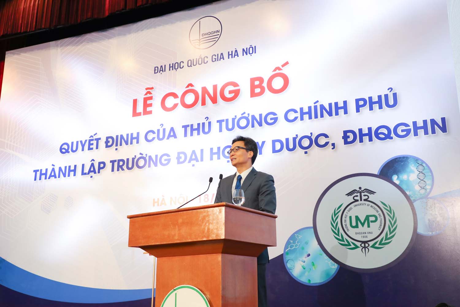Phát biểu tại buổi lễ, Phó Thủ tướng Chính phủ Vũ Đức Đam bày tỏ, sự kiện công bố quyết định thành lập Trường ĐH Y Dược là dốc mốc đáng nhớ của ĐHQGHN và của cả ngành y tế.