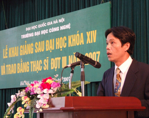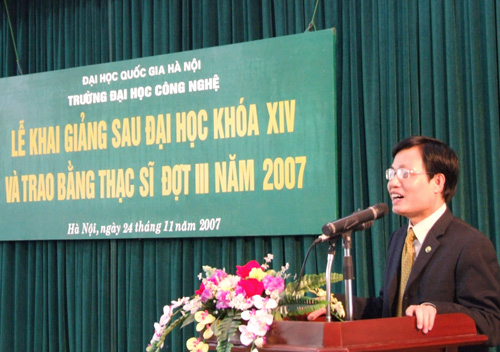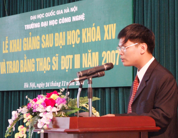 Nhân dịp các học viên cao học hoàn thành chương trình đào tạo và bảo vệ thành công luận văn tốt nghiệp, GS.TS Nguyễn Hữu Đức đã chúc mừng các tân thạc sĩ của Trường. Thay mặt lãnh đạo nhà trường, GS bày tỏ sự cảm ơn chân thành đến sự cộng tác nhiệt thành và hiệu quả của các thầy cô giáo đối với công tác đào tạo sau đại học ở Trường ĐHCN.