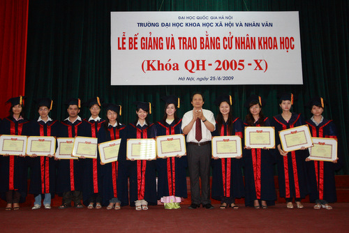 Có 1120 sinh viên khoá QH-2005-X hay khóa K50 tốt nghiệp thuộc 14 ngành đào tạo, chiếm 94,12% tống số toàn khoá. Trong đó có 178 sinh viên đạt kết quả học tập loại xuất sắc và giỏi, chiếm 15,82%, tăng 0,02%; 722 sinh viên đạt loại khá, chiếm 68,92%, tăng 2,2%; 170 sinh viên đạt loại trung bình khá, chiếm 15,7%, giảm 2,4%, không có sinh viên nào tốt nghiệp loại trung bình. Trong số 88 sinh viên tốt nghiệp hệ chất lượng cao có 65 sinh viên tốt nghiệp loại giỏi, chiếm 73,86%; 23 sinh viên tốt nghiệp loại khá, chiếm 26,14%. Những khoa có tỷ lệ tốt nghiệp 100% là Du lịch học và Lưu trữ học và Quản trị văn phòng. Một số khoa có tỷ lệ tốt nghiệp loại giỏi cao như Đông phương học (36,7%), Triết học (25,28%, trong đó tỉ lệ ở hệ CLC là 94,11%).