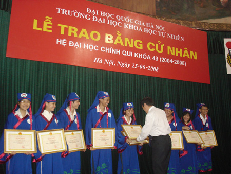 Tại buổi lễ, Giám đốc ĐHQGHN Mai Trọng Nhuận đã trao Bằng khen cho 10 sinh viên có kết quả học tập toàn khóa xuất sắc và 4 SV đạt giải nhất trong kỳ thi Olympic sinh viên toàn quốc năm 2008 các môn đại số, giải tích, cơ học và hóa học. Sinh viên Nguyễn Thị Nhung, K8 Hệ CNKHTN ngành Cơ học đã vinh dự được nhận hai Bằng khen cho danh hiệu thủ khoa (điểm trung bình học tập đạt 9,3) và đạt giải nhất trong kỳ thi Olympic sinh viên toàn quốc năm 2008 môn Cơ học.