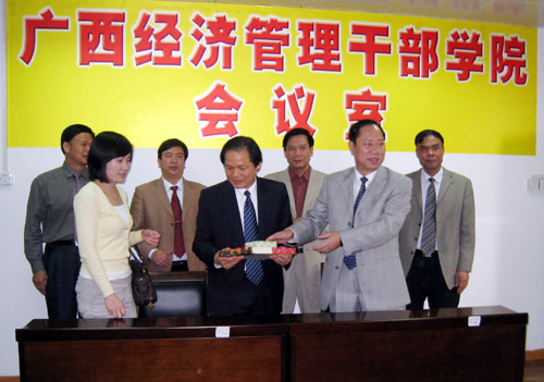 Trong khuôn khổ chuyến đi, Nhà trường đã ký kết thỏa thuận hợp tác và giao lưu văn hóa giáo dục với Học viện Cán bộ Quản lý Kinh tế Quảng Tây - Trung Quốc. Theo đó, nội dung giao lưu hợp tác giữa hai bên là: