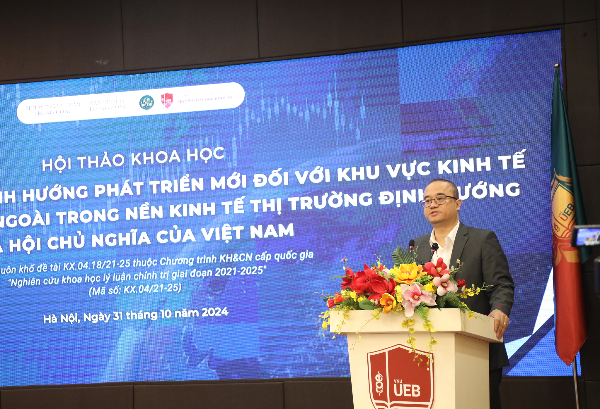 Phó Giám đốc Đào Thanh Trường tin rằng Hội thảo “Tư duy tiếp cận và định hướng phát triển mới đối với khu vực kinh tế có vốn đầu tư nước ngoài trong nền kinh tế thị trường định hướng xã hội chủ nghĩa của Việt Nam”là một diễn đàn khoa học, một sự kiện học thuật tiêu biểu và vô cùng ý nghĩa, khẳng định những đóng góp của Trường ĐH Kinh tế nói riêng và của ĐHQGHN nói chung trong việc triển khai một hướng nghiên cứu mới, mang tính thời sự nhằm tìm kiếm những tiếp cận mới, giải pháp mới trong việc phát triển khu vực kinh tế đầu tư nước ngoài tại Việt Nam, góp phần đưa Việt Nam hòa nhập chung vào dòng chảy của nền kinh tế khu vực và thế giới.