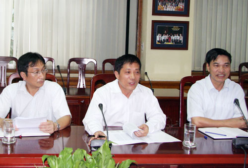 GS.TS. Mai Trọng Nhuận - Giám đốc (giữa), TS. Phạm Quang Hưng - Phó giám đốc (phải) và PGS.TSKH. Trần Mạnh Liểu - Trưởng Ban Xây dựng ĐHQGHN tại buổi làm việc với Ủy ban Ngân sách của Quốc hội. |