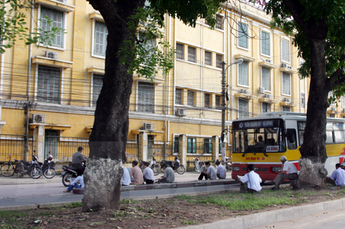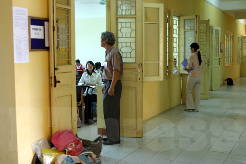 Người thân ngóng chờ các sĩ tử trên đường Nguyễn Trãi bên ngoài trường ĐHKHXH&NV, |