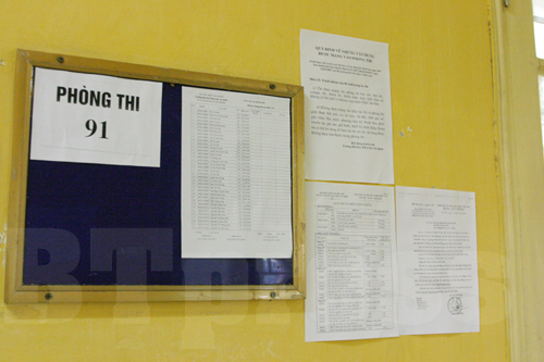 Danh sách thí sinh, quy chế phòng thi, danh sách máy tính được được sử dụng được dán trước cửa các phòng thi. |