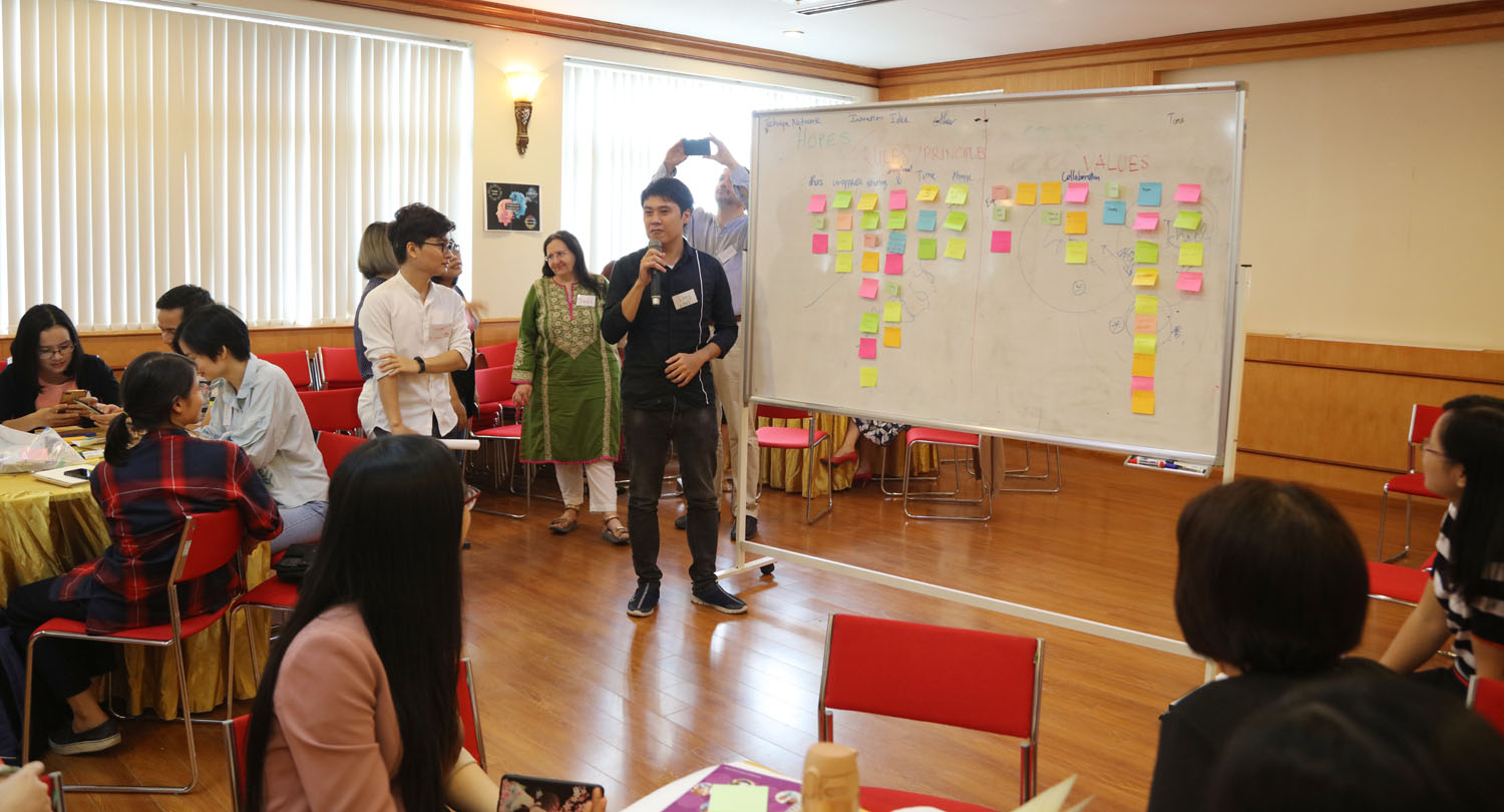 Đây chỉ là một trong rất nhiều trò chơi mà bà Suzi Javis cùng đồng sự của mình là TS. Colman Farrell đưa ra trong buổi đầu tiên của Khóa học Nâng cao năng lực theo phương pháp tiếp cận tư duy đổi mới sáng tạo và khởi nghiệp, được tổ chức lần thứ 4 dành cho các cán bộ giảng dạy và cán bộ quản lý tại Đại học Quốc gia Hà Nội. Tiếp nối thành công của ba khóa trước đó, Cohort 4 chính thức khởi động vào ngày 28/10/2019, với mục tiêu trang bị kỹ năng và thúc đẩy tư duy đổi mới sáng tạo và khởi nghiệp cho các cán bộ ĐHQGHN, xa hơn nữa, là kiến tạo một cộng đồng các nhà giáo dục theo tinh thần khởi nghiệp để lan tỏa sự đổi mới trong toàn ĐHQGHN.