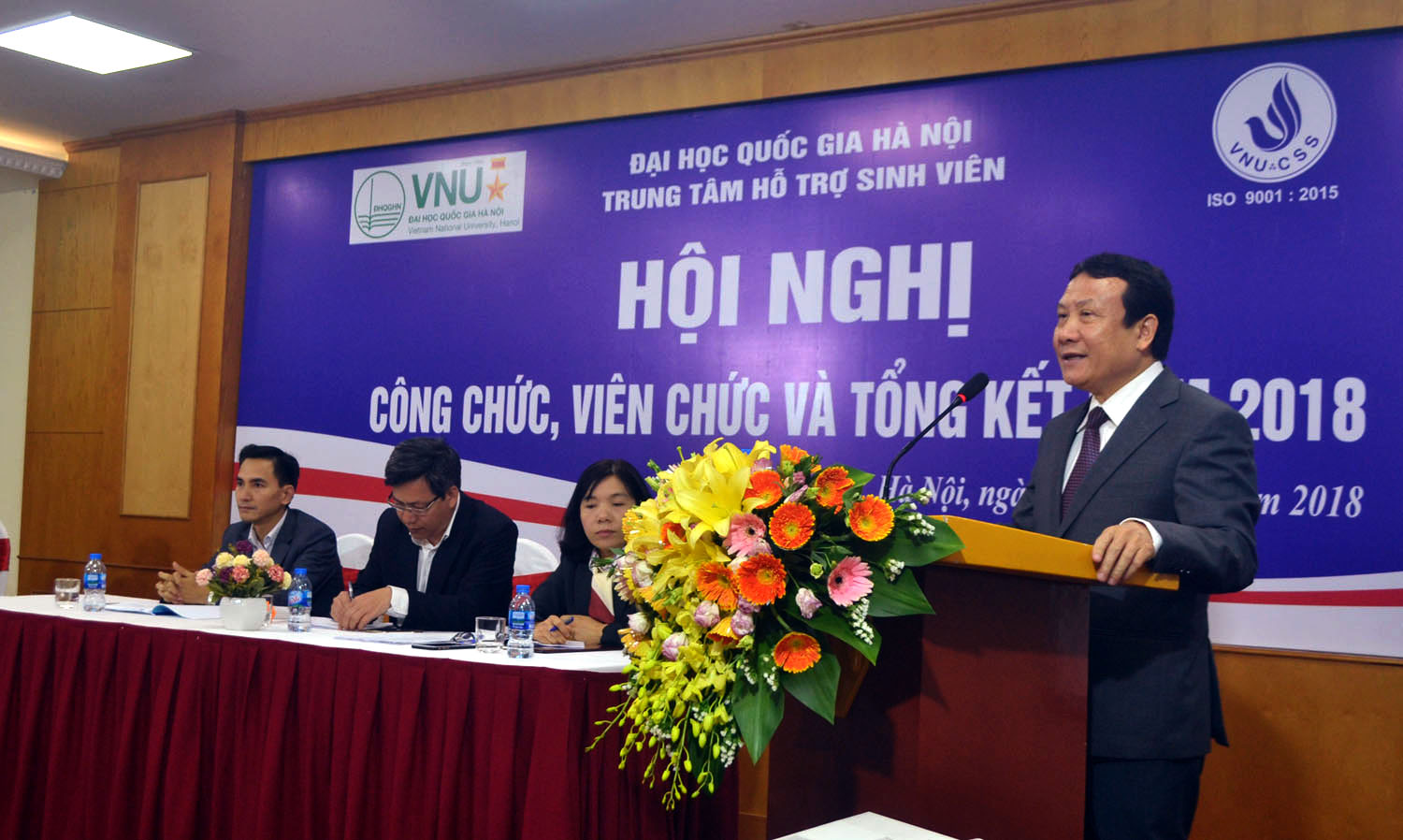 Giám đốc Trung tâm Hỗ trợ sinh viên Hoàng Trọng Nghĩa đã báo cáo tổng kết năm 2018 và nêu lên phương hướng nhiệm vụ trọng tâm năm 2019, trong đó nhấn mạnh hoạt động hỗ trợ sinh viên quốc tế.