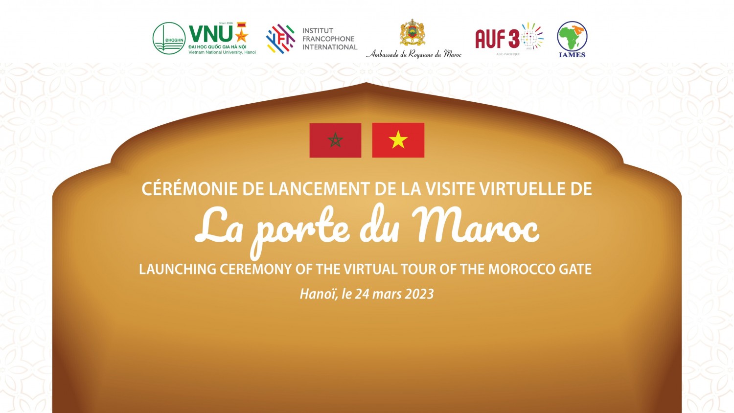 Ngày 24/3/2023, Lễ ra mắt công trình tham quan ảo Cổng Maroc sẽ được tổ chức trang trọng tại Hội trường tầng 1, Nhà E5, ĐHQGHN. Đây chính là cầu nối đưa các Di tích lịch sử - văn hóa đến gần hơn với cộng đồng, đóng góp tích cực vào quá trình bảo tồn và phát huy giá trị văn hóa, đưa di sản văn hóa trở thành sản phẩm của du lịch, phát triển kinh tế - xã hội và góp phần quảng bá hình ảnh của Việt Nam và Maroc.