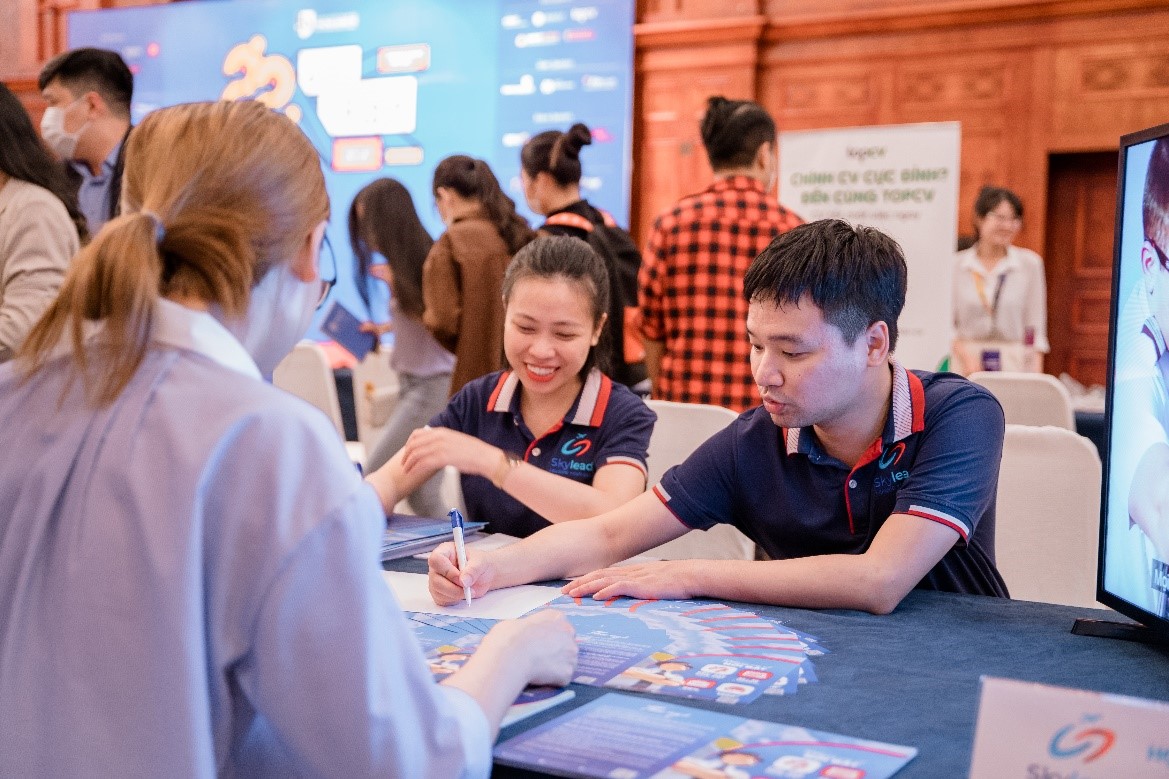 Các doanh nghiệp tham gia Ngày hội việc làm với nhiều sản phẩm hấp dẫn giới thiệu, thu hút tuyển dụng.