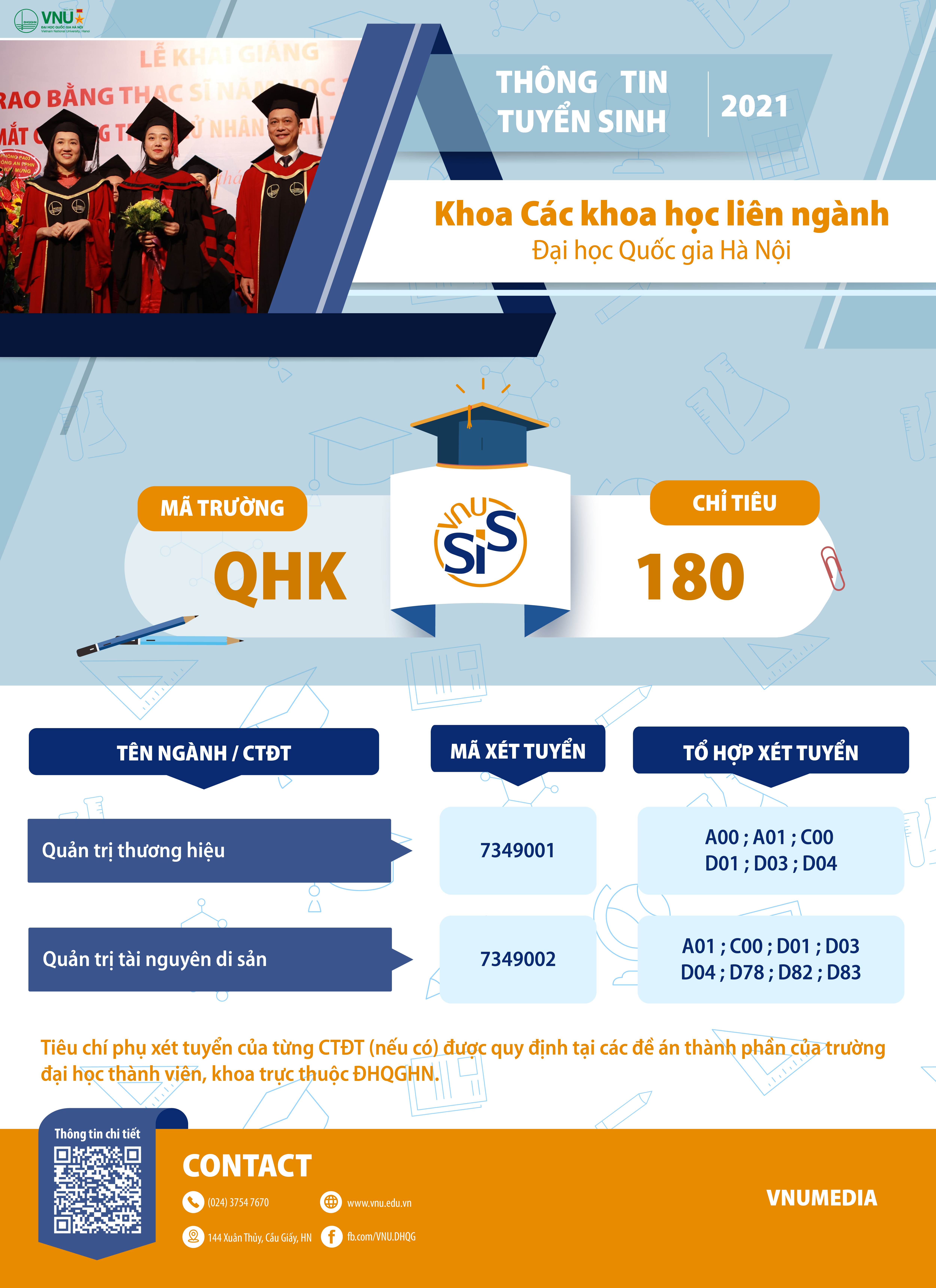 Năm 2021 là năm đầu tiên Khoa Các khoa học liên ngành tuyển sinh và tổ chức đào tạo bậc đại học 02 CTĐT mang tính liên ngành, liên lĩnh vực: Quản trị Thương hiệu, Quản trị Tài nguyên di sản.