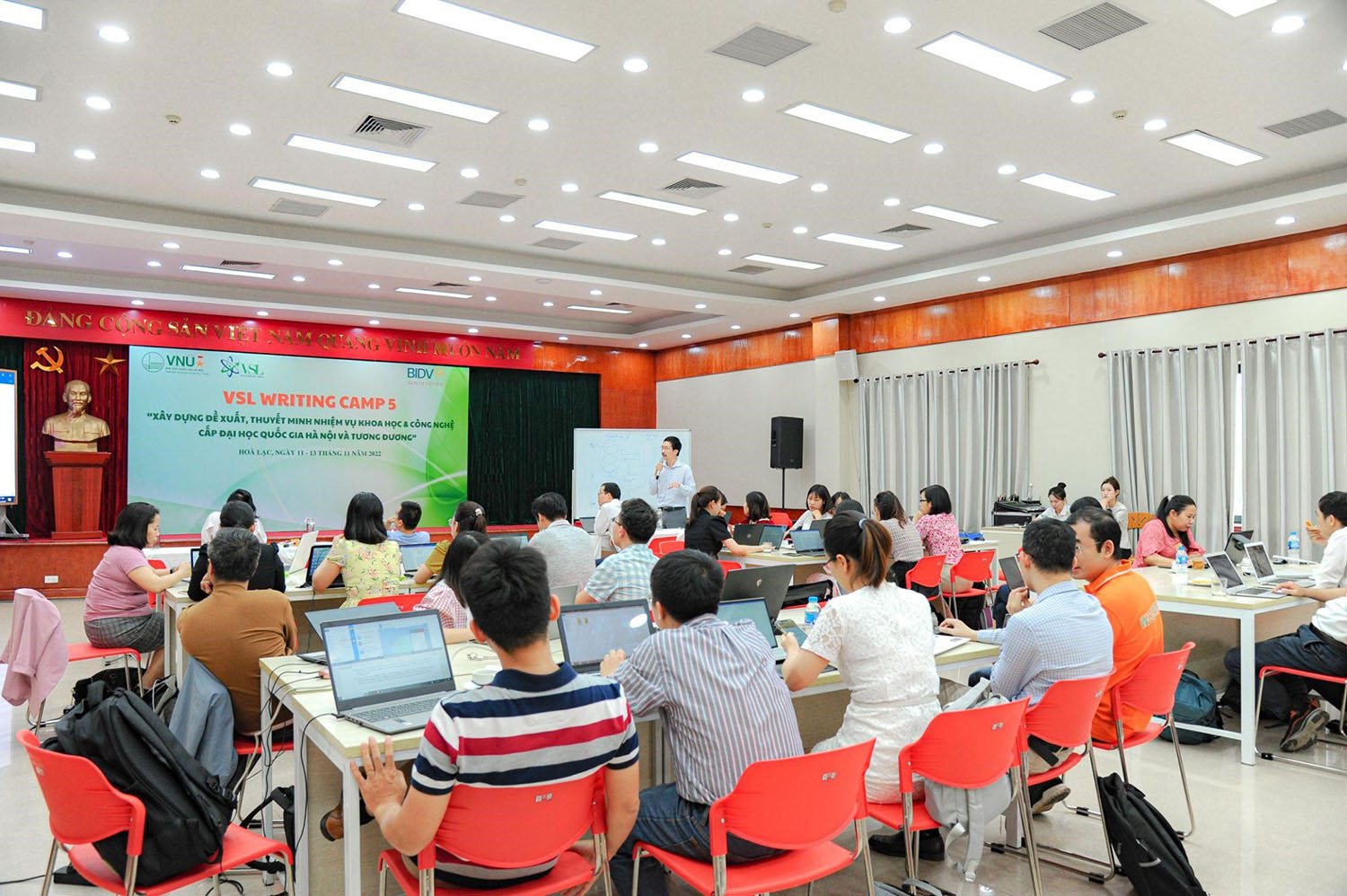 Thực hiện chỉ đạo của Giám đốc ĐHQGHN sau Chương trình đối thoại với các nhà khoa học trẻ diễn ra ngày 16/9/2022, VSL Writing Camp 5 hướng tới giúp các nhà khoa học trẻ chuẩn bị khoảng 30 đề xuất/thuyết minh đề tài, để từ đó tuyển chọn ra những thuyết minh chất lượng tốt nhất và kỳ vọng sẽ có 20 sản phẩm được ĐHQGHN xem xét, tuyển chọn thực hiện ngay trong năm 2023 - 2024.