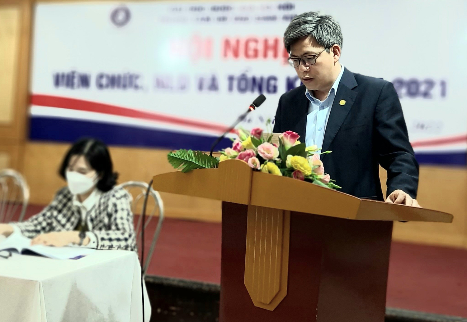 Giám đốc Trung tâm Hỗ trợ sinh viên Hoàng Trọng Nghĩa trình bày Báo cáo tổng kết năm 2021 và phương hướng, nhiệm vụ năm 2022