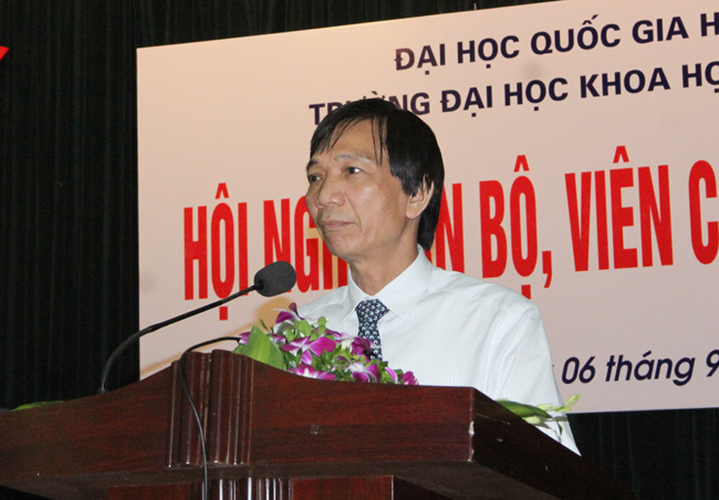 Hội nghị đã nghe PGS.TS Bùi Duy Cam – Hiệu trưởng trường ĐHKHTN trình bày báo cáo kết quả thực hiện nhiệm vụ năm học 2012-2013. Báo cáo nêu rõ, trong năm học qua, Trường đã đạt nhiều thành tích trong các lĩnh vực hoạt động. Trong lĩnh vực đào tạo, Trường đã thực hiện chủ trương của ĐHQGHN về đào tạo các chương trình thuộc nhiệm vụ chiến lược, Nhà trường đã tiếp tục tổ chức đào tạo 3 chương trình tiên tiến do Bộ Giáo dục và Đào tạo giao, 4 chương trình đào tạo tài năng, 2 chương trình chất lượng cao và 3 chương trình đạt chuẩn quốc tế. Đặc biệt, trong năm học 2012-2013, Nhà trường đã tiến hành hoàn thiện chuẩn đầu ra cho 45 chương trình đạo tạo thạc sĩ và 48 chương trình đào tạo tiến sĩ. Trường THPT chuyên KHTN đã đạt thành tích đặc biệt xuất sắc trong công tác đào tạo, bồi dưỡng học sinh giỏi tham dự các kỳ thi học sinh giỏi quốc gia và quốc tế trong đó có 01 em được vào vòng chung kết năm cuộc thi đường lên đỉnh Olympia năm học 2012-2013, 01 em đạt huy chương vàng Olympic tin học châu Á-Thái Bình Dương. Hiệu trưởng Nhà trường cho biết, năm học qua, Trường đã công bố 205 bài báo trên các tạp chí khoa học quốc tế có uy tín. Trường ĐHKHTN vinh dự được nhận 01 bằng khen của Bộ Khoa học và Công nghệ và 01 Cúp vàng International Techmart Vietnam 2012. Trường cũng vinh dự được Bộ Giáo dục và Đào tạo trao tặng bằng khen “Đơn vị đạt thành tích xuất sắc trong công tác nghiên cứu khoa học của sinh viên năm 2012”, 02 công trình NCKH của sinh viên được trao giải nhất của Bộ Giáo dục và Đào tạo. Trường đã công bố 205 bài báo trên các tạp chí khoa học quốc tế, 92 bài trong tuyển tập hội nghị khoa học quốc tế, 291 bài báo trên các tạp chí khoa học trong nước và 161 báo cáo tại các hội nghị, hội thảo trong nước.