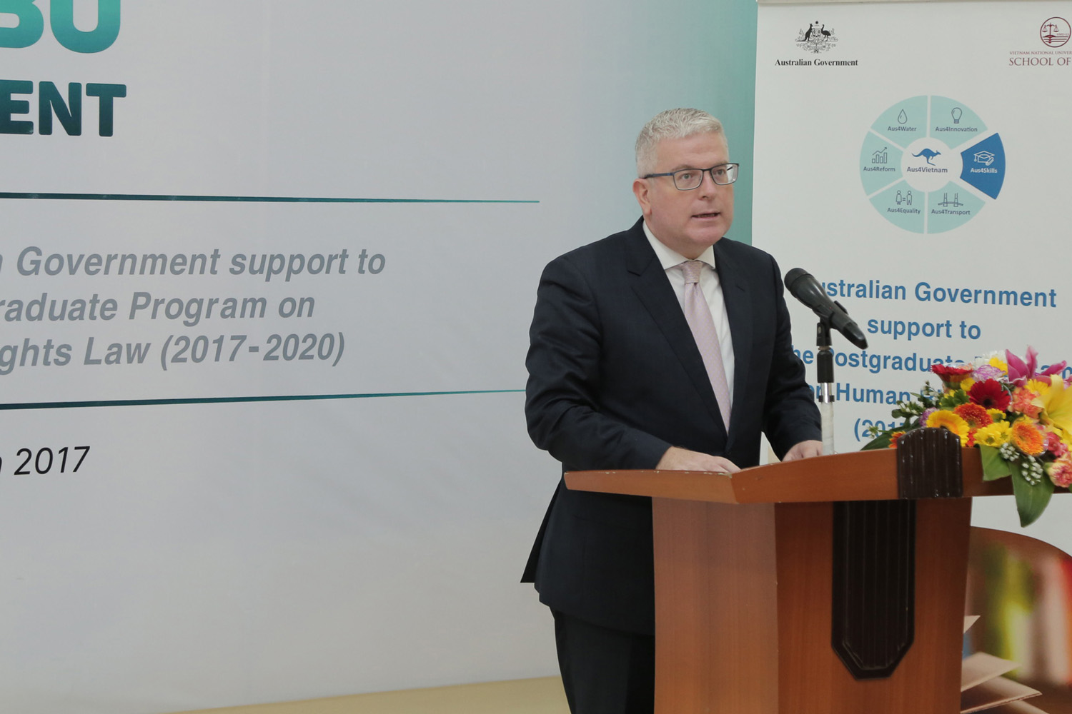 Đại sứ Australia tại Việt Nam - ngài Craig Chittick chia sẻ, một trong những trọng tâm về quyền con người mà Australia cam kết thực hiện khi được bầu vào Hội đồng nhân quyền Liên hợp quốc giai đoạn 2018 – 2020 là xây dựng năng lực về quyền con người. Hỗ trợ cho VNU-LAW nâng cao chất lượng Chương trình đào tạo sau đại học pháp luật về quyền con người là một minh chứng cho thấy Australia đang nỗ lực thúc đẩy quyền con người trong khu vực và trên thế giới một cách thực tế và phù hợp.