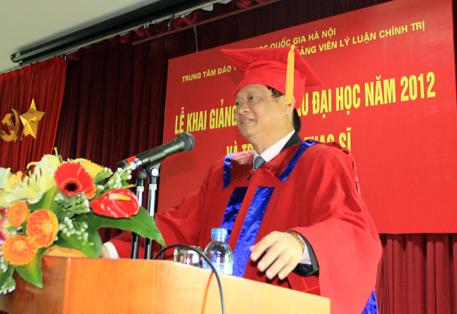 GS.TS Vũ Văn Hiền đã gửi lời chúc mừng và chào đón 79 học viên cao học và 18 nghiên cứu sinh trúng tuyển kỳ thi tuyển sinh sau đại học 2012, đồng thời nhiệt liệt chúc mừng 101 tân thạc sĩ. Cũng trong buổi lễ, GS.TS Vũ Văn Hiền đã bày tỏ sự cảm ơn chân thành đối với lãnh đạo ĐHQGHN, các giáo sư, nhà khoa học trong và ngoài ĐHQGHN đã quan tâm, phối hợp, tạo điều kiện giúp đỡ Trung tâm trong công tác đào tạo, bồi dưỡng và nghiên cứu khoa học.