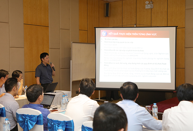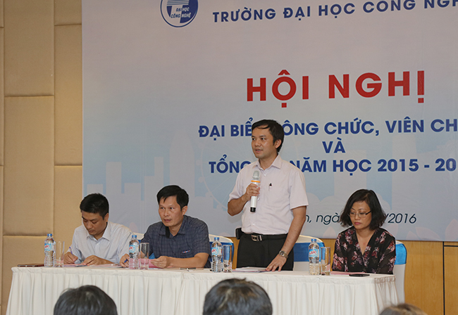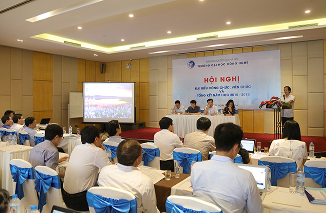 Tại hội nghị, lãnh đạo Trường ĐH Công nghệ đã trình bày báo cáo tổng kết năm học 2015-2016 và kế hoạch nhiệm vụ năm học 2016-2017. Theo đó, Nhà trường đã hoàn thành công tác kiện toàn bộ máy quản lý các cấp; xây dựng kế hoạch 5 năm trên cơ sở chiến lược phát triển nhà trường đến năm 2020 tầm nhìn 2030; duy trì và nâng cao chất lượng đào tạo, đào tạo theo chuẩn đầu ra gắn với nhu cầu xã hội; phát triển nhóm nghiên cứu mạnh, nâng cao hàm lượng công nghệ, định hướng sản phẩm ứng dụng trong hoạt động khoa học công nghệ.