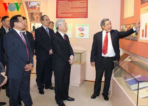 Tổng Bí thư cùng các đại biểu thăm Phòng truyền thống ĐHQGHN