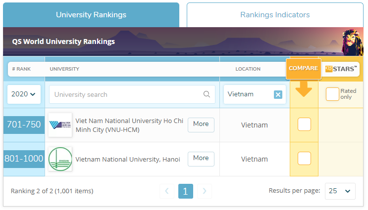 Trước đó, tháng 6/2018 vừa qua, tổ chức xếp hạng QS cũng đã công bố kết quả xếp hạng thế giới 2019. Theo đó, lần đầu tiên hai Đại học Quốc gia của Viêt Nam là ĐHQGHN và ĐHQG Tp.HCM có tên trong top 1000 các đại học hàng đầu thế giới.