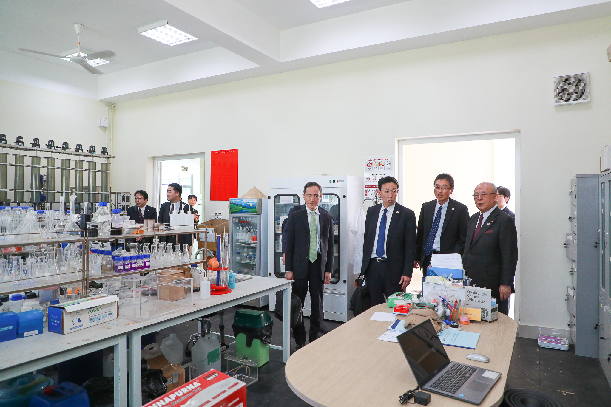 Trong khuôn khổ buổi làm việc, Cố vấn đặc biệt Liên minh Nghị sỹ hữu nghị Nhật - Việt và đoàn công tác đã đi thăm khu vực giảng đường và ký túc xá của Trường Đại học Việt Nhật tại tổ hợp HT1, HT2 và Dự án QG-HN04.
